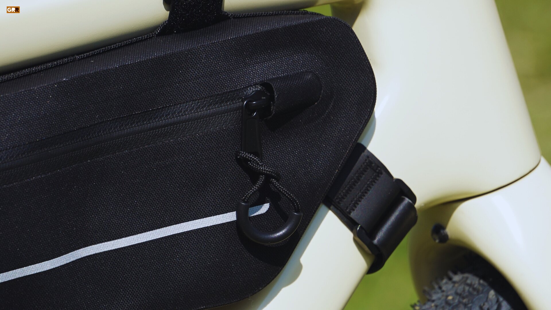 En el exterior de los paneles laterales, también encontramos una tira reflectante que nos hará más visibles. En este caso, la bolsa no cuenta con salida para cableado, algo que para algunos no será importante pero quizás el bikepacker más puro echará de menos.